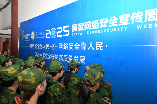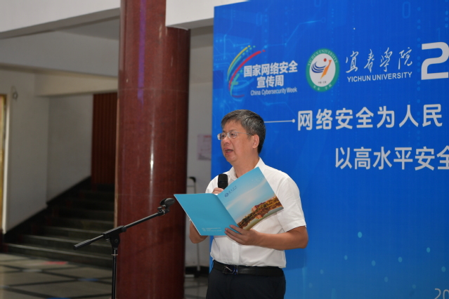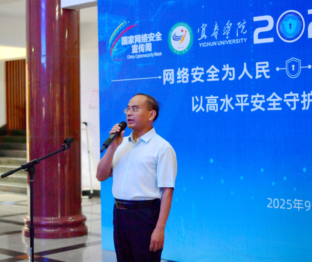本站讯(记者 何杰 学生记者 朱世宏)9月18日上午,宜春学院2025年“国家网络安全宣传周”校园活动启动仪式暨网络安全公益展在主教楼大厅举行。本次宣传活动以“网络安全为人民网络安全靠人民——以高水平安全守护高质量发展”为主题。