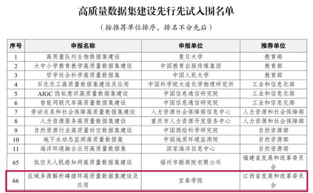 本站讯(生命科学与资源环境学院 供稿)近日,2025中国国际大数据产业博览会“高质量数据集”主题交流活动在贵阳举行。会上发布了高质量数据集建设先行先试项目名单,宜春学院陈清清教师团队申报的《区域多源解析磷循环高质量数据集建设及应用》成功入选。