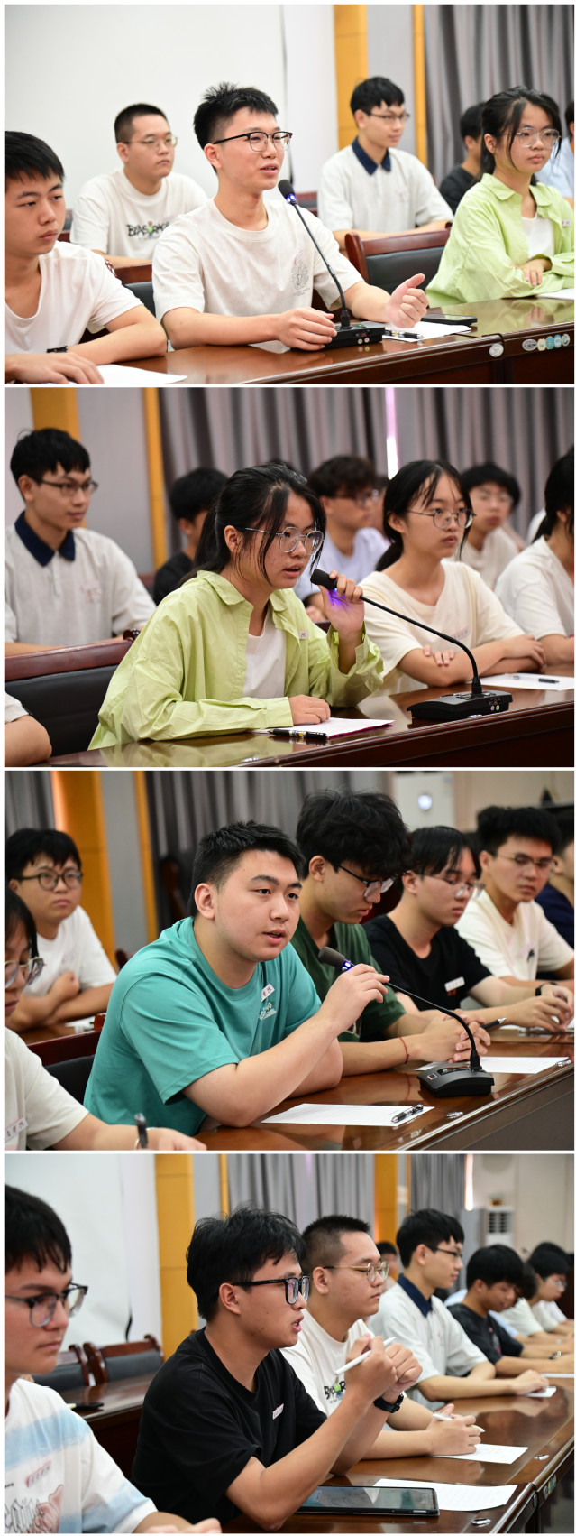 座谈会上,教务处负责人刘旭东首先向陈仙辉院士汇报了自2024年11月新工科实验班开班以来的建设情况,和在办学过程中遇到的挑战,并说明了学校未来对新工科实验班的培养计划与目标。 随后,2024级新工科实验班的同学向陈仙辉院士汇报了他们的学习情况。金鑫、袁南芳、刘涛睿、黄洋等同学结合半年来的学习经历,亲切地称呼陈仙辉院士为“陈学长”,并向他请教如何确定学习目标、选择研究方向以及如何平衡学习兴趣与考研等问题。 陈仙辉院士在与同学们交流时,高屋建瓴地指出,新时代大学生应树立并聚焦目标,将短期目标与长期目标有机结合。他强调,未来产业将围绕能源技术、信息技术、生物医学技术三大领域展开,迫切需要具备交叉融合能力的人才。学科发展相互关联,不存在绝对隔阂。他以稀土、芯片和能源为例,结合自身凝聚态物理专业知识,提出紧密结合AI技术的要求,深入阐述了科技发展与学科融合的重要性。他进一步强调,无论未来从事何种事业,知识积累都是关键。在此基础上,他精炼地指出大学生应具备以下几大能力:一是明确学习目标并保持自律;二是主动学习,培养终身学习能力;三是培养逻辑思维和批判性思维能力;四是坚持不懈,具备执行力与效力。这些要求不仅是对学术的追求,更是对个人成长的高远期许。