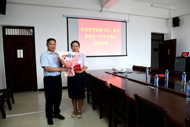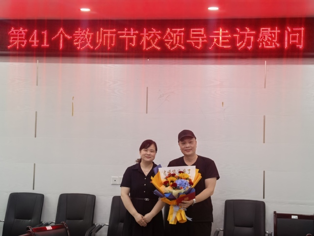本站讯(人事处 供稿)在第41个教师节来临之际,为弘扬尊师重教的优良传统,切实增强教师的归属感与幸福感,9月10日,我校领导班子成员分组带队深入校园,走访慰问优秀教师、省先进工作者、劳动模范及家庭困难教师代表,向辛勤耕耘在教育一线的教职工致以节日问候和崇高敬意。 校党委书记李国金走访慰问优秀教师代表:江西省高校中青年学科带头人、药学院张昌源老师和江西省高校中青年骨干教师、智能制造与材料化工学院刘文文老师,详细了解他们的工作生活情况,对他们在教书育人、科研创新中取得的成果给予充分肯定,并勉励他们继续发挥示范引领作用,为学校高质量发展贡献智慧力量,学校将全力支持教师成长发展,营造尊师重教的良好氛围。