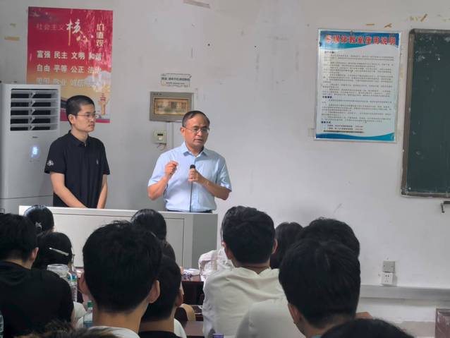 在巡查过程中,授课教师均展现出了高度的敬业精神和责任感,提前到达教室,精心做好教学准备工作。讲台上,他们精神饱满,讲解生动,运用丰富多样的教学手段,将知识娓娓道来;教室里,学生们出勤率高,精神抖擞,专注地聆听着老师的讲解,积极参与课堂互动,课堂气氛热烈而有序。同时,各类教学设施运行正常,尤其是暑假期间教室新安装的空调,有效驱散了夏日的炎热,为师生营造了舒适的教学环境,也为教学活动的顺利开展提供了坚实的保障。整体教学运行有序,展现出了新学期的新气象。 课后,李国金书记与授课教师进行了亲切的交流。他语重心长地指出,课堂是教育教学的核心阵地,是培养高素质人才的关键环节。要进一步强化教学规范,从教学计划的制定到课堂教学的实施,每一个环节都要做到严谨细致。为了让教师们更直观地理解如何提升课堂教学质量,李国金书记还亲自走上讲台,为在场的教师示范讲授了思政课。示范结束后,李国金书记希望各位教师能够持续打磨教学内容,不断更新知识体系,创新教学方法,激发学生的学习兴趣和主动性,让每堂课都充满温度、富有深度,成为学生成长道路上的明灯。