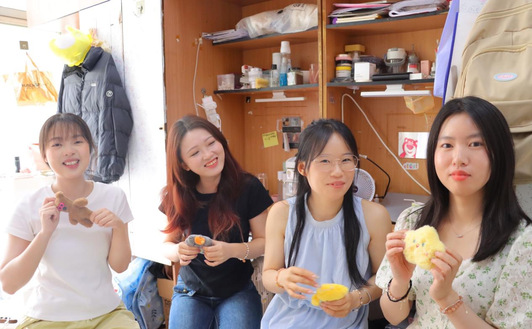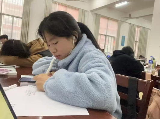 同舟共济:“研”途有你,不惧风雨 “一个人可以走得很快,但一群人才能走得更远。”笔者了解到,临近考期,紧张和焦虑弥漫在廖艺周围,也催生出专属于她独特的解压记忆:半夜10点半冲向烧烤摊的“治愈夜宵”、在寝室围坐夜谈释放情绪和互相安慰、临考前图书馆灯下与室友李芳芬裹紧外套互查考点的冬夜、生理学教材在昏暗光线下的斑驳影子……“有人在伸手不见五指的前方为你提灯,这种陪伴让你知道,你不是一个人在战斗。”这些苦中作乐的片段,成为支撑她走下去的微光。