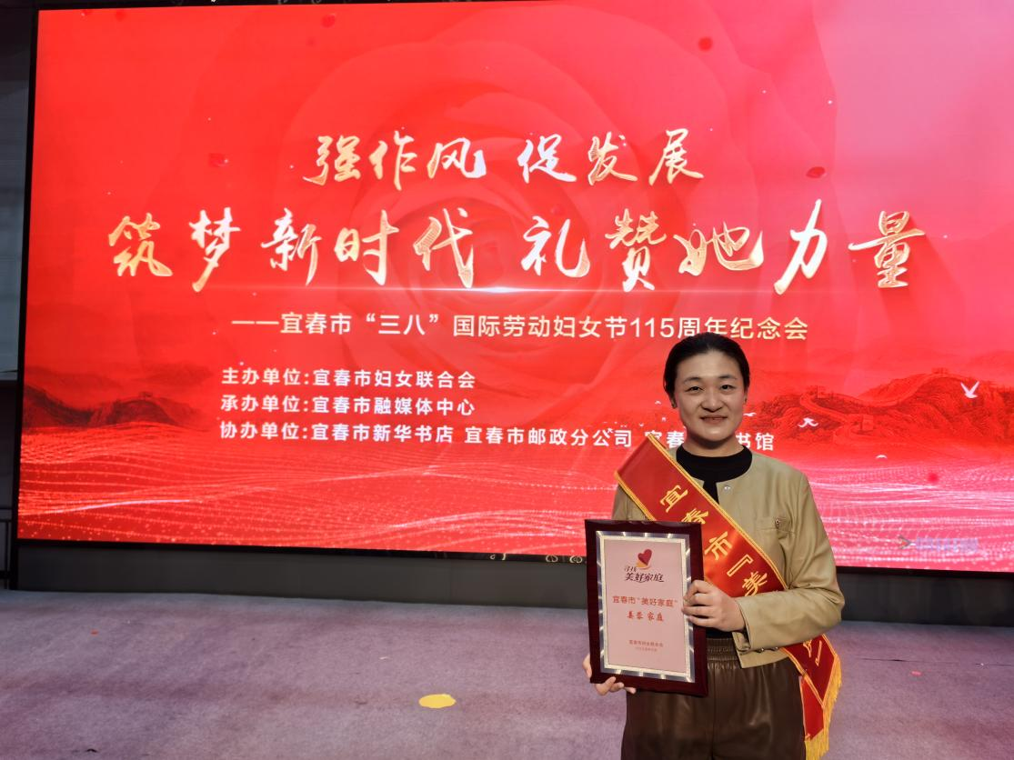 本站讯(工会 供稿)3月10日,由宜春市妇女联合会主办的“强作风促发展,筑梦新时代,礼赞她力量”宜春市“三八”国际妇女节115周年纪念会在宜春广电中心盛大举行。宜春学院“美好家庭”代表姜蓉老师受邀参会,与全市各界优秀女性代表一起接受表彰,共庆节日,共话发展,表彰先进典型,凝聚奋进力量。
