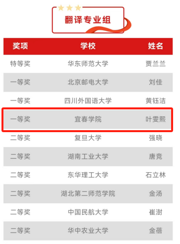宜春学院外国语学院积极探索外语教育高质量发展新路径,坚持以赛促教、以赛促研,鼓励和支持教师在课堂中运用先进教学方法,创新教学模式,提升教育教学能力,切实保障外语应用型专业人才培养质量。近年来,教学团队荣获“外教社杯”全国高校外语教学大赛江西赛区一等奖2项、二等奖3项,三等奖1项;荣获外研社“教学之星”全国复赛一等奖1项、二等奖5项;荣获第六届外语微课大赛二等奖2项、外研社首届课件大赛三等奖1项。学院建有江西省线下一流本科课程2门、江西省优质课程3门、江西省精品资源共享课程4门,“大学英语”为江西省精品在线开放课程、江西省高校课程育人共享课程和江西省在线开放课程。教师承担江西省普通高校教改研究、江西省基础教育研究、教育部产学合作协同育人等省级以上教改课题15项。学生在“学研汇智”杯全国高校商务外语综合能力大赛、“田家炳”杯全国师范院校师范生教学技能竞赛、全国口译大赛等专业竞赛获得国家级奖项30余项;80多名学子考取北外、广外、川外、湖师大、英国伯明翰大学等国内外名校研究生,龚子友同学今年以初试第一、复试第一、总成绩第一考取北京外国语大学外国语言学及应用语言学专业硕士研究生。 图文一审 袁 璐 图文二审 敖林珠 图文三审 高芸 伍忠  |