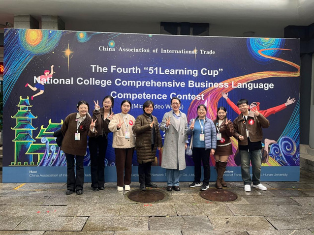 本站讯(特约通讯员 曹幼南)2024年12月7日,第四届“学研汇智杯”全国高校商务外语综合能力大赛(微视频作品赛项)全国总决赛在湖南大学外国语学院成功举办。我校代表队“津津乐‘稻’队”(参赛队员:陈逸婷、唐蕙琳、刘慧、受骏、蔡宝平、李雨竹)荣获本科组二等奖,曹幼南、聂淑琴获优秀指导老师奖。