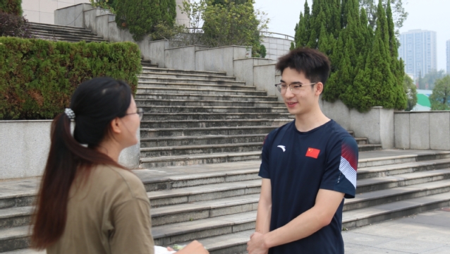 张高杰在学校接受学生记者采访 “只为心中的这抹中国红” 比赛的光打在赛场的中心,四周漆黑一片,世界仿佛只剩下了队友和裁判。随着音乐的节奏,张高杰所在的团队一如平常沉浸地投入到了比赛当中,为最后一场比赛画下圆满的句号。 “中国健美操队以2金1银1铜的成绩,排名金牌榜榜首!”话音刚落,国歌声在佩塞罗上空奏响,全场热烈沸腾,掌声和欢呼声连绵不断,张高杰和队友们振臂欢呼,激动地紧紧拥抱在一起。 回忆起比赛的那几天,张高杰表示心情久久不能平静。“从穿上代表‘中国健美操队’的战袍开始,为国争光的责任就沉甸甸地压在我们的肩上,这一切努力只为心中的这抹中国红!而我们真的做到了!”从今年6月份进入国家队,能够站在世界最高水平的舞台与各国选手同台竞技,为国争光是他最大的心愿,紧张和兴奋是他最大的感受。“在上场前,我们看到了各国的比赛运动员,他们在技术、体能和经验方面都非常出色,面对未知的情况,我们心里也在‘打鼓’。但到真正上场的时候,我们更多的是为国家而战的兴奋!” 世锦赛结束了,但是张高杰的征程并没有结束。“这并不是努力的终点,我要再接再厉,继续增强自己的实力,参加更多的比赛,为国家争光,为母校添彩!” 审核 敖林珠 编辑 袁璐  |