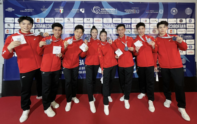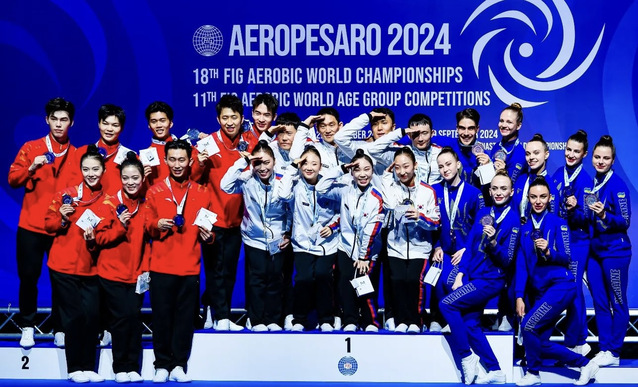 本站讯(学生记者 颜佳羽)9月24日至9月30日,第18届世界健美操锦标赛在意大利佩萨罗举行,我校体育学院舞蹈表演专业学生张高杰所在团队荣获成年组有氧踏板亚军以及团体赛季军的历史性佳绩。时隔6年中国健美操队再次亮相世锦赛就用亮眼的成绩证明了自己。