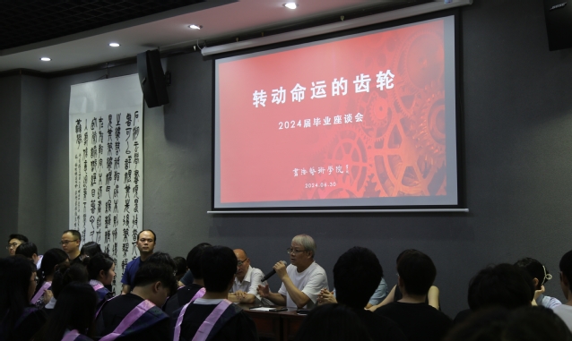 余新卫在致辞中,向毕业生们顺利完成学业表示祝贺,对毕业展作品给予高度评价。寄语学生继续保持对书法的热爱和追求,将所学知识与技能运用到实践中去,不断探索和创新,为传承和发扬中华书法艺术贡献自己的力量。 开幕式结束后,举行以“转动命运的齿轮”为主题的毕业座谈会。座谈会上,毕业生代表、非毕业生代表和教师代表分别发言。毕业生代表分享了自己在书法学院的成长故事,表达了对学校、学院、老师的感恩之情以及对同窗的不舍之情。非毕业生们代表表示要以毕业生为榜样,勤奋好学,努力提升书法技艺和综合素质,为未来发展打下坚实基础。教师代表鼓励毕业生在未来的人生道路上,无论遇到何种艰难险阻,都要始终保持对书法艺术的热爱,坚守初心,不随波逐流,拒绝“躺平”,将命运的齿轮牢牢掌握在自己手中。
