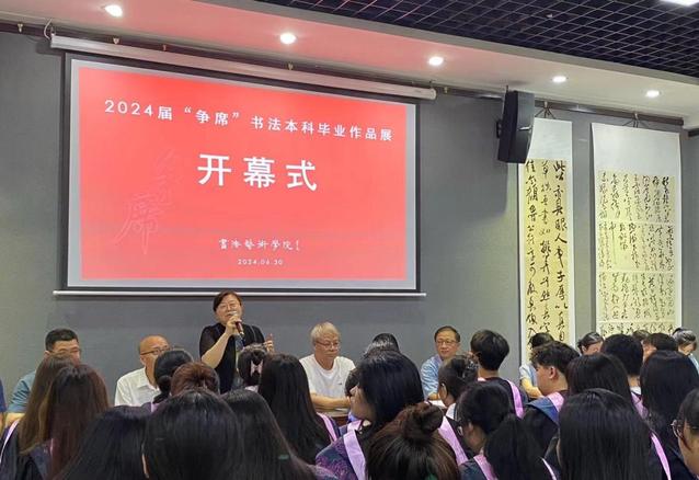 本站讯(书法艺术学院 供稿)6月30日,“转动命运的齿轮”_2024 届“争席”毕业作品展开幕式暨毕业座谈会在科技楼一楼展厅举行。校党委委员、副校长余新卫到现场指导并宣布展览开幕,任课教师代表何凌风教授、书法艺术学院全院师生及部分校友参加活动。