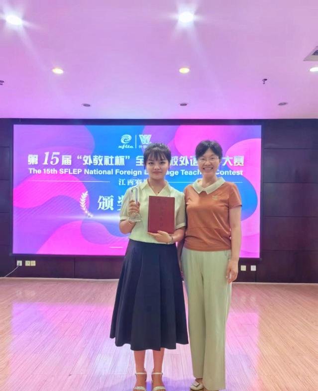 本站讯(外国语学院 供稿)近日,第十五届“外教社杯”全国高校外语教学大赛(江西赛区)在江西师范大学隆重举行。本次比赛由江西省高等教育学会主办、上海外语教育出版社和江西师范大学承办,分为本科英语专业组、商务英语组和高职组三个组别,共有来自全省近50所高校的73名教师参赛。经过激烈角逐,我校外国语学院教师刘丹丹凭借扎实的专业素养和过硬的教学能力,以复赛第四、决赛第二,总评第三的优异成绩荣获本科英语专业组一等奖,刷新了我校教师在本项赛事上的成绩记录,为学校争得了荣誉。