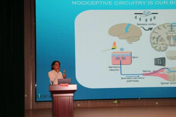 基础医学院党总支书记兼院长吴正平主持讲座,对两位主讲嘉宾的学术背景与研究成就进行了详细介绍。 Nitika Gamper以《疼痛的神经生物学—一切都是心理作用吗?》为题分享了其近年来研究成果。报告内容由基础医学院张小丁博士全程翻译,以确保学术观点精准传递。Nitika Gamper教授结合自身丰富的研究经历,从神经生物学角度深入解析疼痛的产生机制,详细介绍了背根神经节(DRG)在疼痛产生中的重要生理作用。
