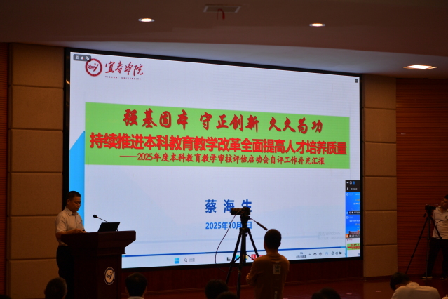 会议第二阶段由教育部本科教育教学审核评估专家组组长张安富教授主持。张安富从评估理念、评估目的、评估任务、评估方式和专家组的承诺五个方面介绍了专家组的工作任务和审核评估相关要求。他指出,新一轮本科教育教学审核评估是贯彻落实新时代教育评价教育督导体制机制改革要求,是推动本科教育高质量发展的重要举措,是对我国高校本科教育教学工作的一次全面检验,是形成中国特色高等教育评估制度的重要组成部分,意义十分重大。他表示,专家组将本着对国家负责、为学校服务的工作宗旨,按照江西省教育厅的要求,对标评估指标体系执行审核评估流程,秉持实事求是、严谨认真的态度,全面考察、整体判断、客观评价、坦诚交流,努力完成好这次审核评估任务,为宜春学院建成有特色高水平应用型大学贡献专家的智慧和力量。 蔡海生校长作自评报告补充汇报。他围绕“聚焦育人方向,筑牢本科教育根基”“聚焦育人模式,激活本科教育动能”“聚焦育人特色,锻造本科教育品牌”“聚焦育人保障,彰显本科教育成色”四个方面,系统汇报了学校在应用型人才培养方面的工作实践、创新举措及未来规划。他表示,学校将以此次评估为新的起点,以评促建、以评促改、以评促管、以评促强,全力打造高质量发展新引擎,他真诚期待在各位专家的指导下进一步优化学校本科教育教学体系,不断提升办学水平和人才培养质量。 与会人员观看了学校宣传片《宜春学院一流本科人才培养纪实》。