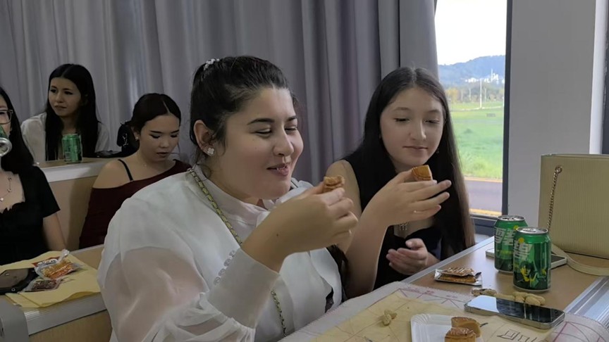 压轴环节是歌曲赏析《但愿人长久》。在悠扬的旋律中,主持人介绍了苏轼《水调歌头》的创作背景与意境。“但愿人长久,千里共婵娟”的歌声引起各国学子共鸣,不少同学轻声跟唱,沉浸在艺术与情感交融的氛围中。 整场活动欢声笑语不断,文化气息浓郁。留学生们表示,这不仅是一次节日庆祝,更是一次深刻的文化体验。通过汉字、诗词、音乐等多维度展示,他们深入理解了中秋节的文化内涵,增强了对中国文化的认知与喜爱。 本次活动为留学生搭建了感知中华文化的平台,促进了文明交流互鉴,营造了和谐包容的校园国际化氛围。活动在欢乐祥和的氛围中圆满结束,为留学生们留下了难忘的中秋记忆。
