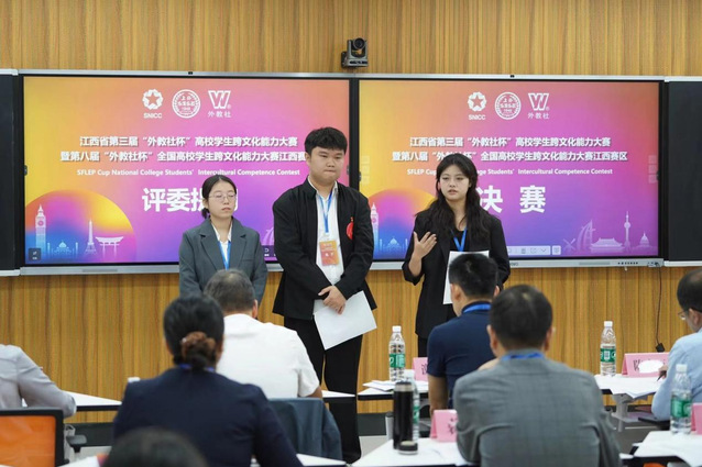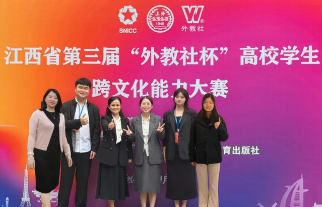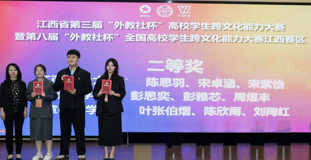 本站讯(外国语学院 供稿)2025年10月18日,江西省第三届“外教社杯”高校学生跨文化能力大赛暨第八届“外教社杯”全国高校学生跨文化能力大赛(江西赛区)在江西农业大学举行。我校由23 级翻译专业彭思奕、23 级中文教育专业彭雅芯、24 级临床医学专业周煜丰组成的参赛团队,凭借出色表现先以复赛小组第一晋级决赛,最终斩获全省二等奖,充分彰显了我校学子优秀的跨文化素养与广阔的国际视野。